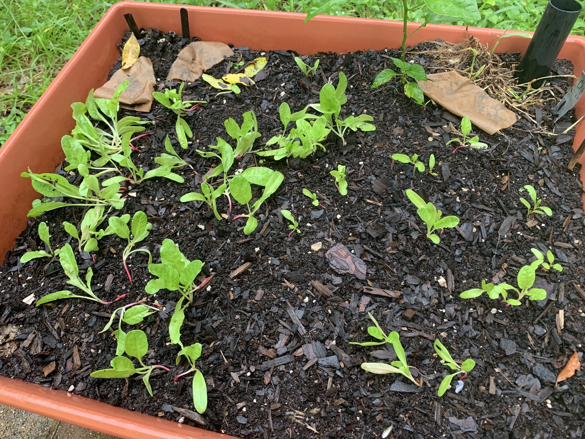 My vegetable fails for summer were tomatoes and Swiss chard. I had grown a bunch of cherry tomatoes, but really wanted big tomatoes. I KNOW they don’t like the extreme heat. But, I had one plant already growing so I planted it. The plant is looking great, but no fruit is forming. I’m going to let it grow and maybe it will get tomatoes in a couple of months.