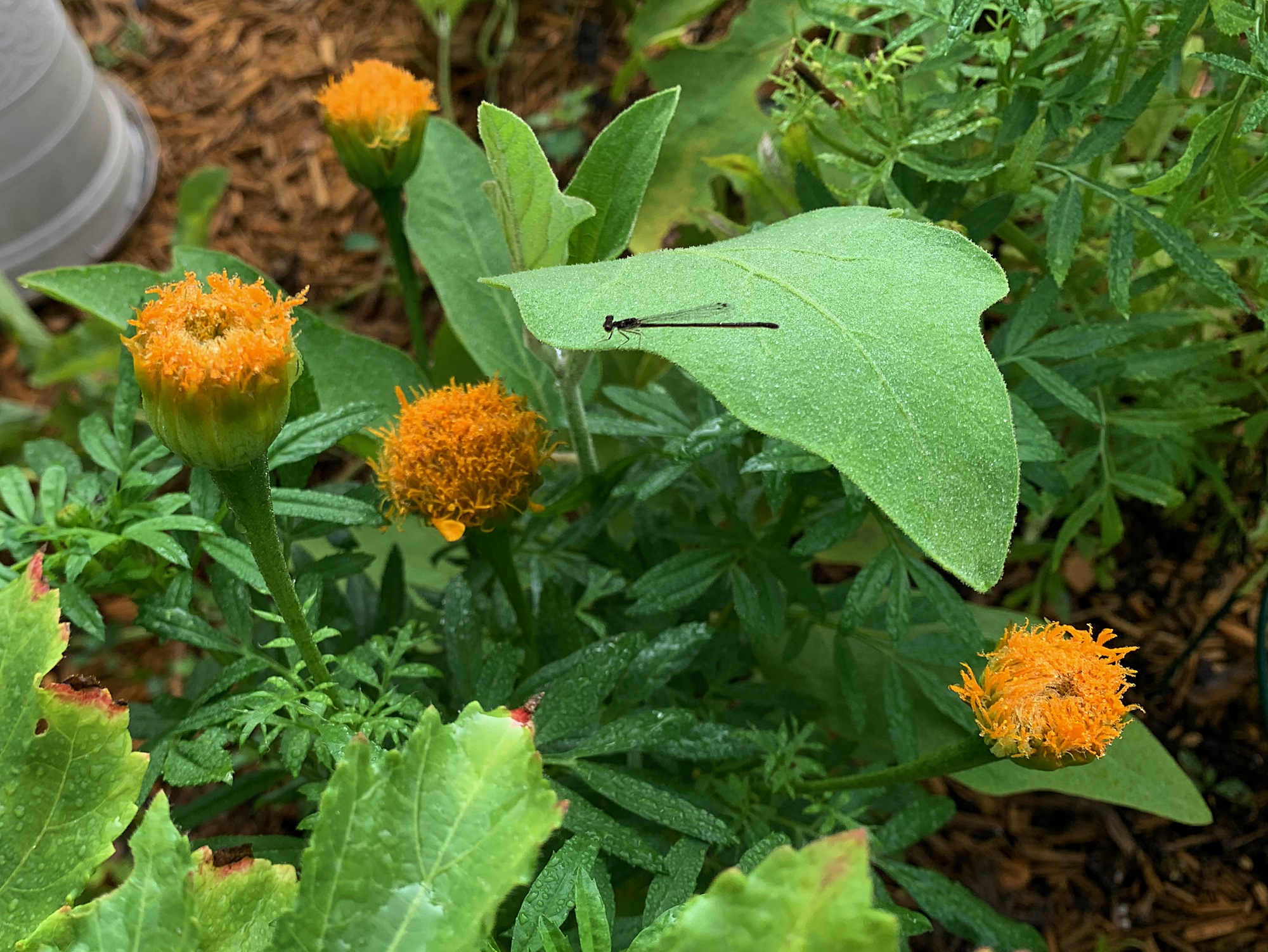 Previous Image Next Image 6.29 dragonfly Little damselfly Little damselfly on eggplant leaf among the orange marigolds. Thank you for sharing!Tweet Share on Bluesky (Opens in new window) Bluesky MoreShare on TumblrLike Loading...