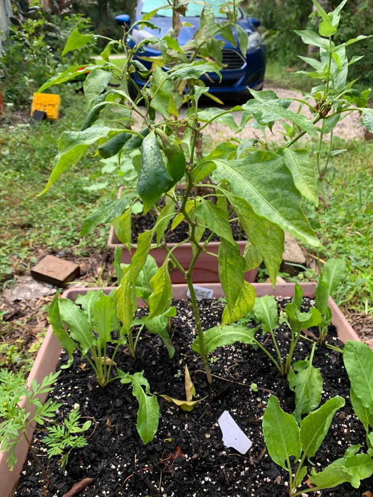 Yellow leveler under the Roselle Eggplant, first plantedBanana pepper