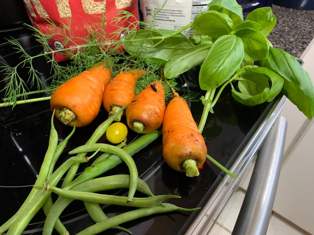 Once the petals were all removed, the remaining green pods went into the compost. I rinsed and dried the red petals and stored them in the freezer. I’ll take them out to use when making tea.