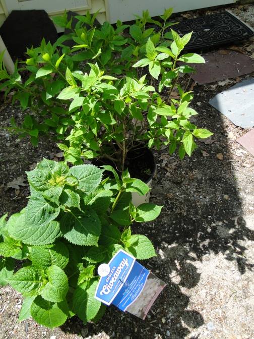 When I bought six hydrangea shrubs this past Spring, one of them was a Pee Gee (paniculata – Grandiflora). The tag said that it wanted some shade so after some thought, I ended up putting it at the edge of the yard near some big trees that would shade it partially. I didn’t know that it would bloom that first year but it did and had some very dainty, very white flowers at the ends of it’s long stems.