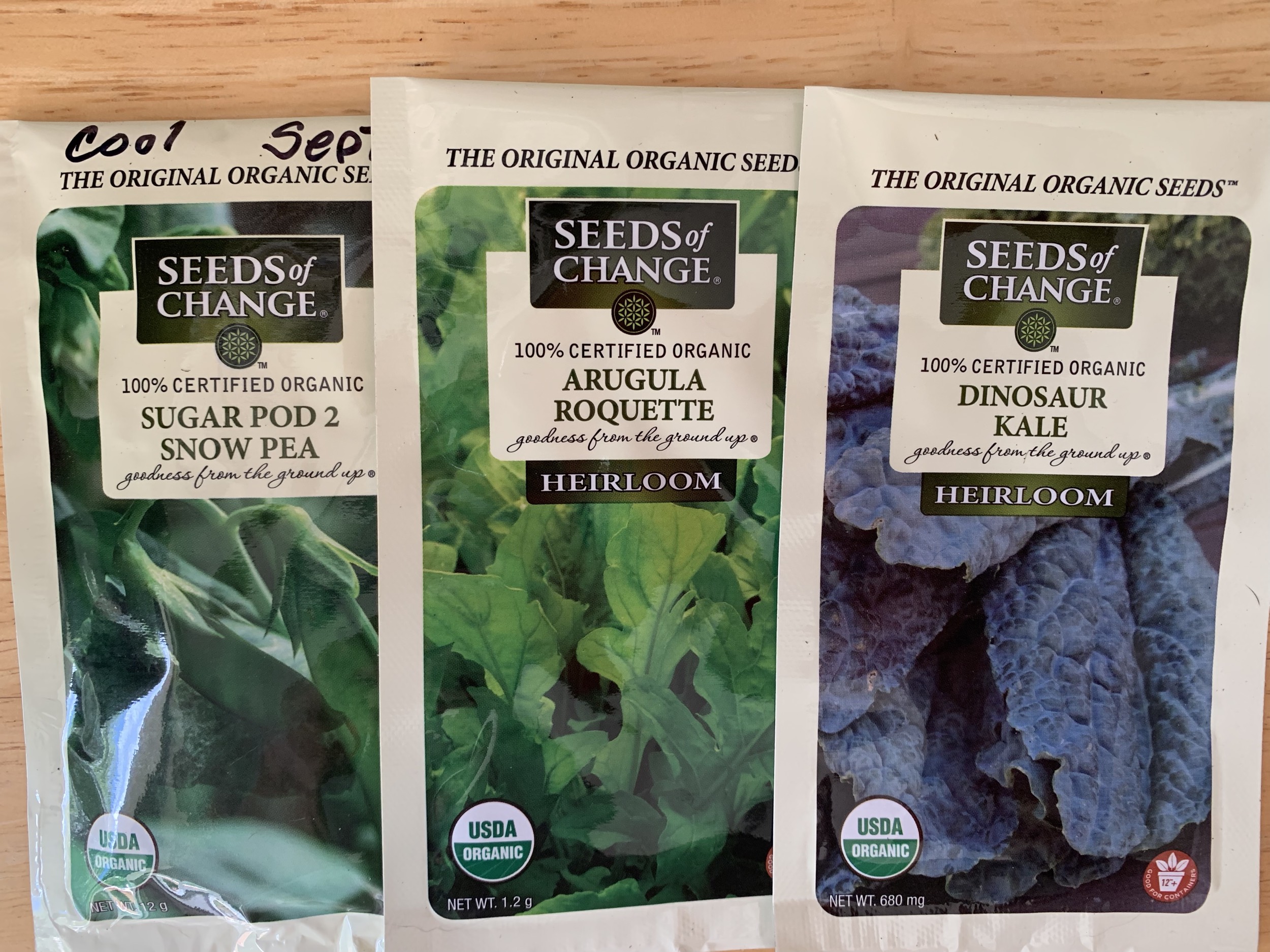 Previous Image Next Image cool weather seeds Seeds to plant in cooler weather Seeds of Change garden vegetable seed packets with kale, arugula, and sugar pod snow peas. Thank you for sharing!Tweet Share on Bluesky (Opens in new window) Bluesky MoreShare on TumblrLike Loading...