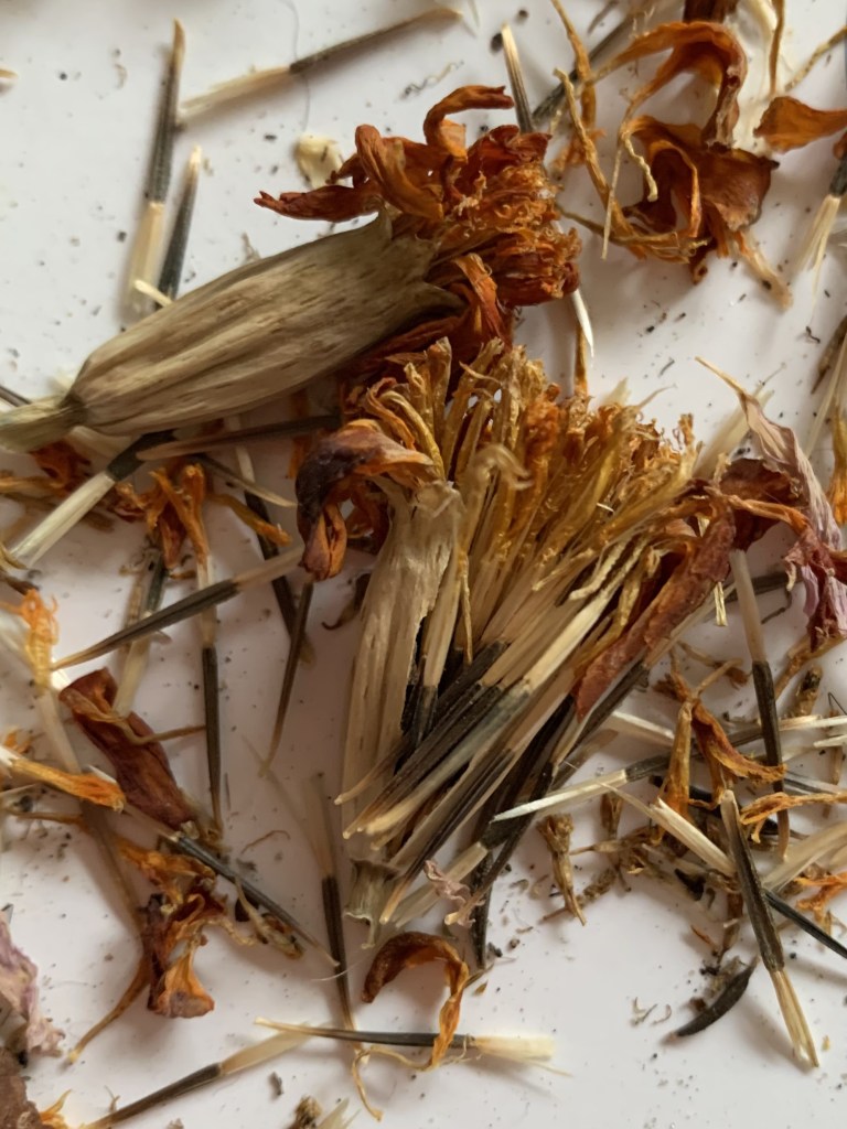 Marigolds are very useful in the garden as bad bug deterrents. To make sure you have plenty for the following year – or all season long here in Florida – snap the old flower heads off and save them.