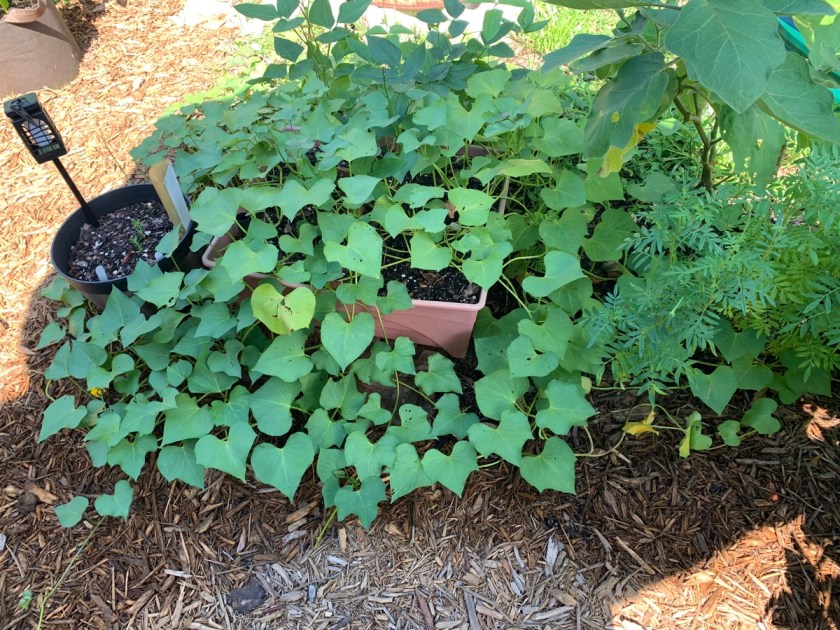 Find a good place in the yard, that can be dug up easily, and plant sweet potato slips. This coming Spring I will be ordering purple sweet potato slips. I plan to plant them in one of my Vegega raised beds once again. I found that digging them up was tough, but I don’t really have any other place to grow them.