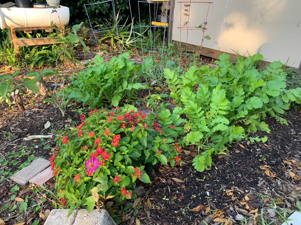 Now they are safely planted into the round metal bed. I had to set up my umbrella because it was very hot and sunny. I’ll let them have sun all day once they are adjusted to their new grow space, or if it cools off a bit. They will definitely need this shade every afternoon during summer.