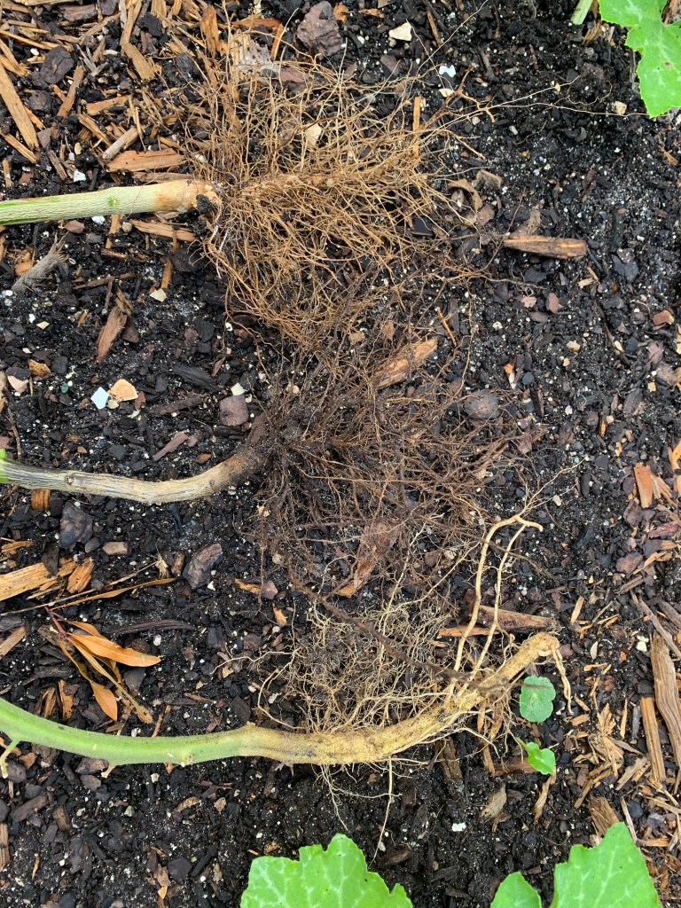 The pumpkin vines (first year) have nearly covered my walkway. I can’t easily move the hose so have to leave it in the middle.