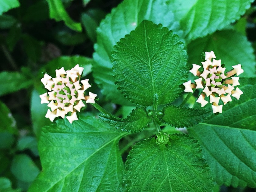 I photographed these little flowers without knowing what they were. Possibly they are Lantana, which is also an invasive plant here in Florida. It is listed as a non-native plant at the UF site.