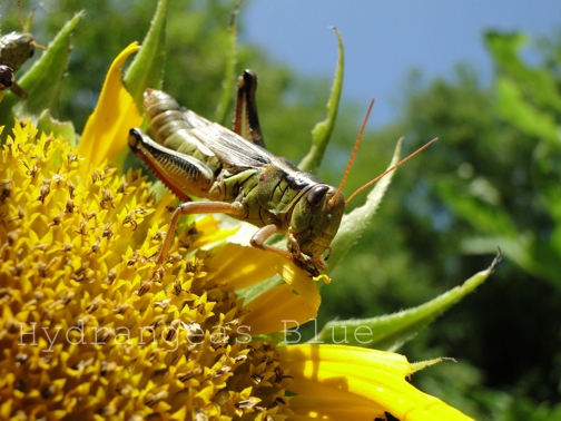 If the birds do end up eating the grasshoppers, they will be down near ground level. The grasshoppers are feasting on the leaves of many of my garden plants. If I put out feeders, I feel like I am inviting birds to their death, because of the cats.