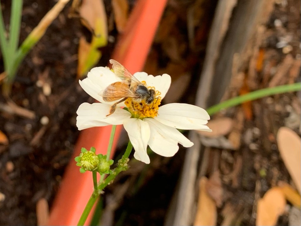Spiderwort with beeRichardia Scabra ground cover with little white flowers that bees love.Ground cherryBidens alba